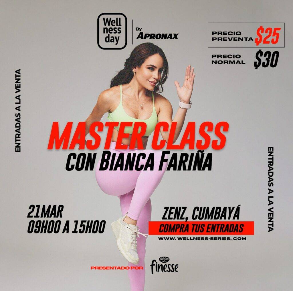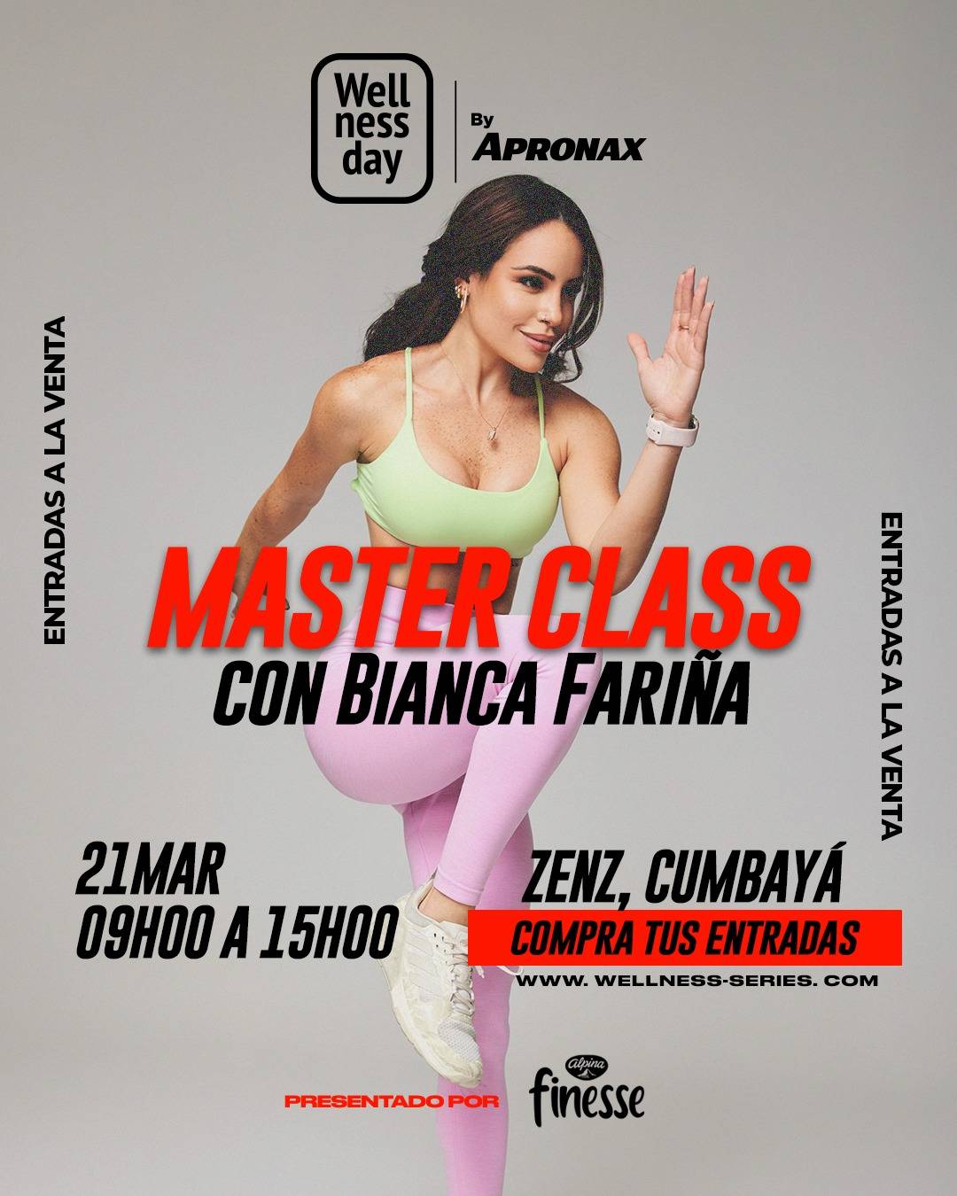Un encuentro que va más allá del movimiento: una experiencia de transformación, bienestar y energía positiva 🌿💥. Bianca Fariña, experta en fitness y nutrición, te guiará en una masterclass única, diseñada para que conectes con tu cuerpo, optimices tu energía y lleves hábitos saludables a tu día a día.